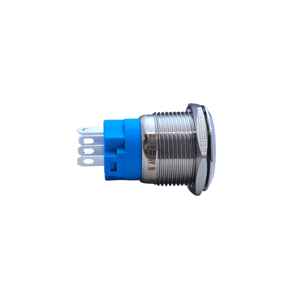 E2 19MM METAL BUTON KALICILI 12-24V MAVİ LED 1NO/1NC