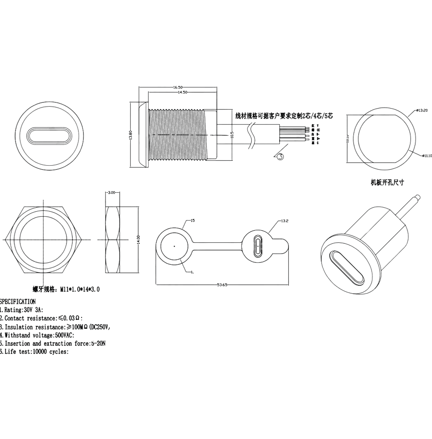 IC-266T-2 Pano Tip TYPE-C Şase Dişi 5P – Şarj + Data